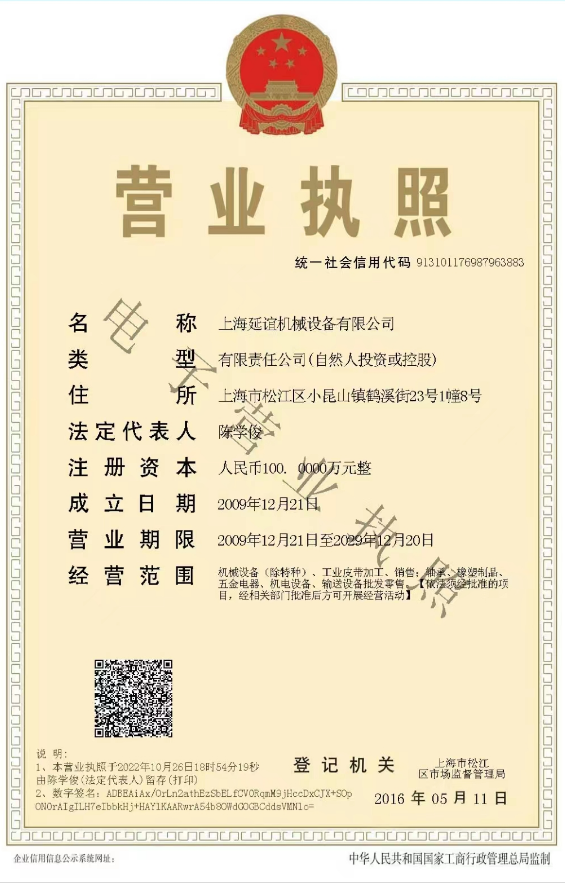 上海延誼機械設備有限公司 辦公地址:上海市青浦區華志路1258號 生產地址:無錫市惠山區經濟開發區玉祁配套區錦祁路 銷售電話:021-62213013/62212949 售后熱線:18930614058/18951580982